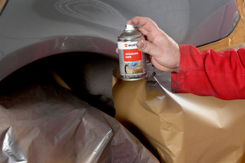 Shake the can well for 2 minutes before spraying. Remove the red push button from the cap, put in the pin at the base of the can and push the pin in as far as it will go; remove and dispose of the red push button. Shake the can well for another 2 minutes. Apply 1-2 thin spray coatings to the prepared surface. Observe the intermediate flash-off time! Yield 250 ml: Approx. 0.5-0.75 m. Dust-dry: 7 minutes Touch dry: 6 hours