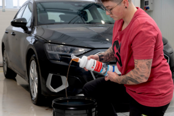 Gebruik op hogedruk-apparaten met schuimlans: Afhankelijk van het gewenste type schuim (droog/nat), voorverdunnen met water in verhouding 1:10-1:20. Stem de dosering af op de gewenste schuimstructuur. Gebruik met schuimlans: Meng 15-25 ml product per 1 l water. Sop het voertuig van onder naar boven af en wrijf vervolgens met een spons. Spoel grondig met schoon water af. Handwassen: Maak een sop van 50-80 ml in 10 l warm water. Was het voertuig met een spons. Spoel grondig met schoon water af.