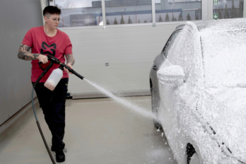 - Het flink schuimende reinigingsschuim kan worden gebruikt voor het voorreinigen als sneeuwschuim in een schuimpistool of een schuimsproeier en als shampoo voor het handmatig wassen van voertuigen