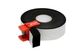 Rollen voegafdichtingstape worden tijdelijk bij elkaar gehouden door het nietje