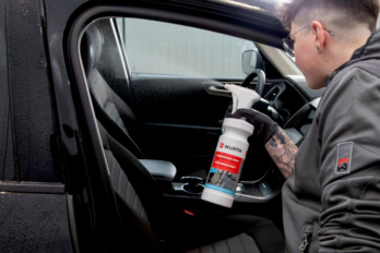Spuit het te behandelen oppervlak voorzichtig in op een afstand van ca. 30 cm – niet verzadigen. Herhaal de behandeling bij hardnekkige geurtjes. Verspreid over leder-oppervlakken gelijkmatig met een doek.
