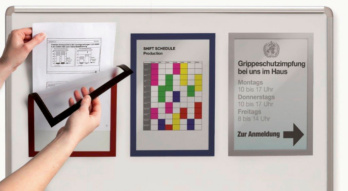 - Documenten kunnen snel worden opgehangen en vervangen dankzij het magnetische frame