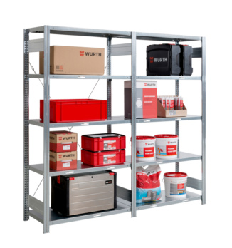 Stevige inhaakstelling mt 5 stalen legborden voor zware belastingen, werkplaatsen en fabrieken