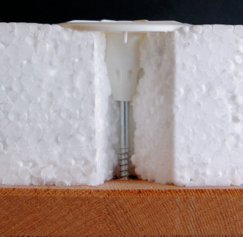 For fastening insulation materials (e.g. polystyrene, polyurethane, stone wool, cork etc.) to wooden walls in combination with wood or chipboard screws made of zinc plated steel